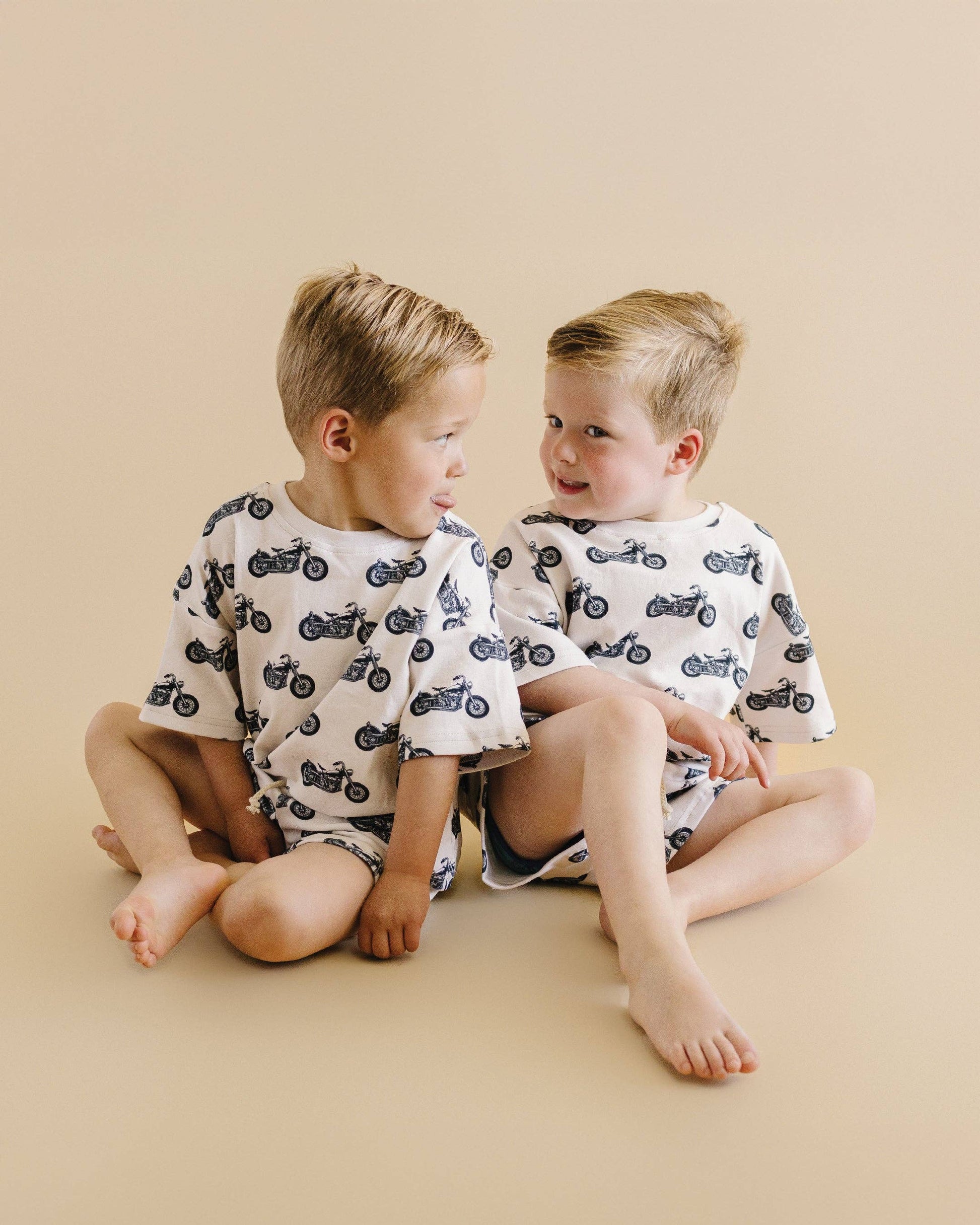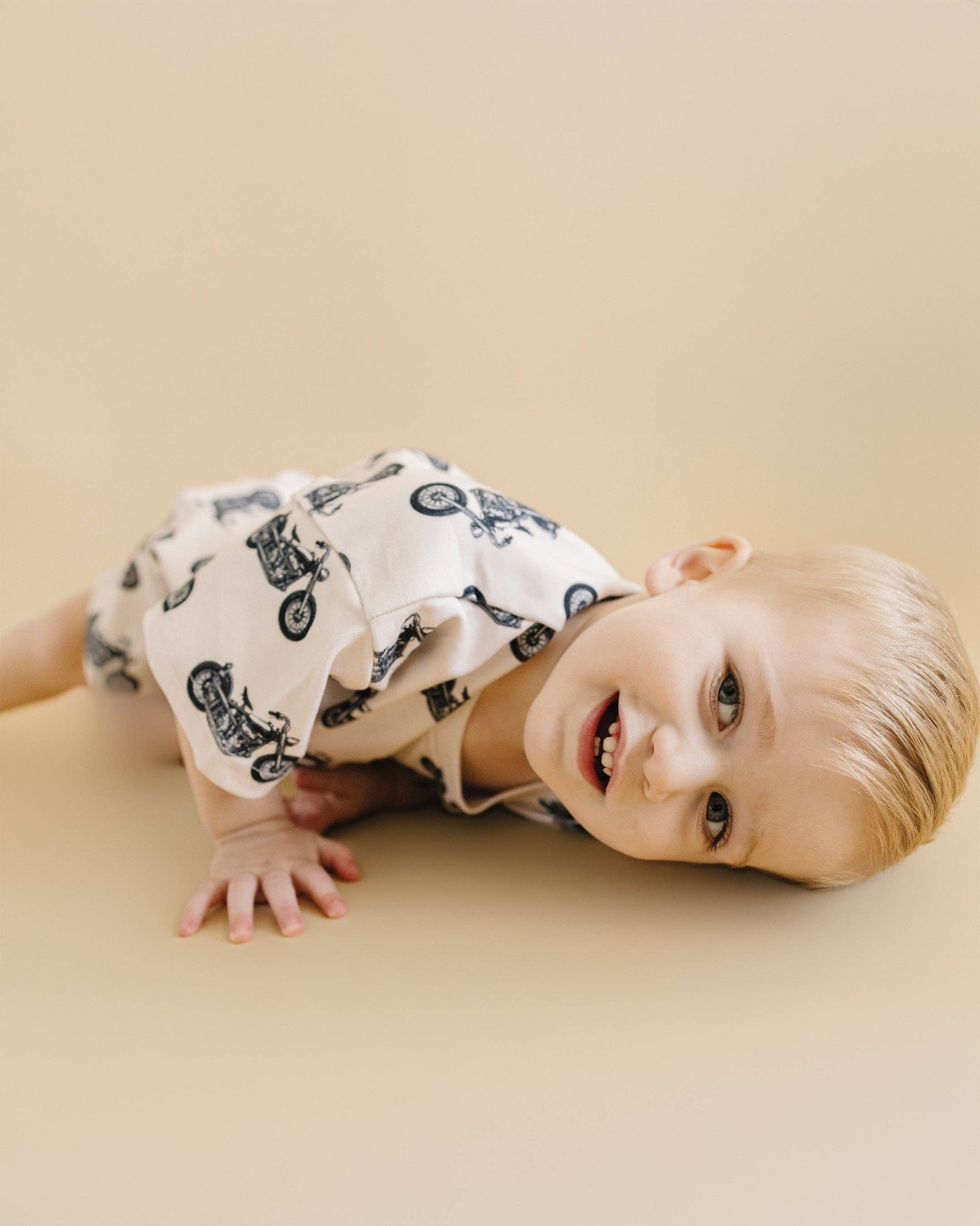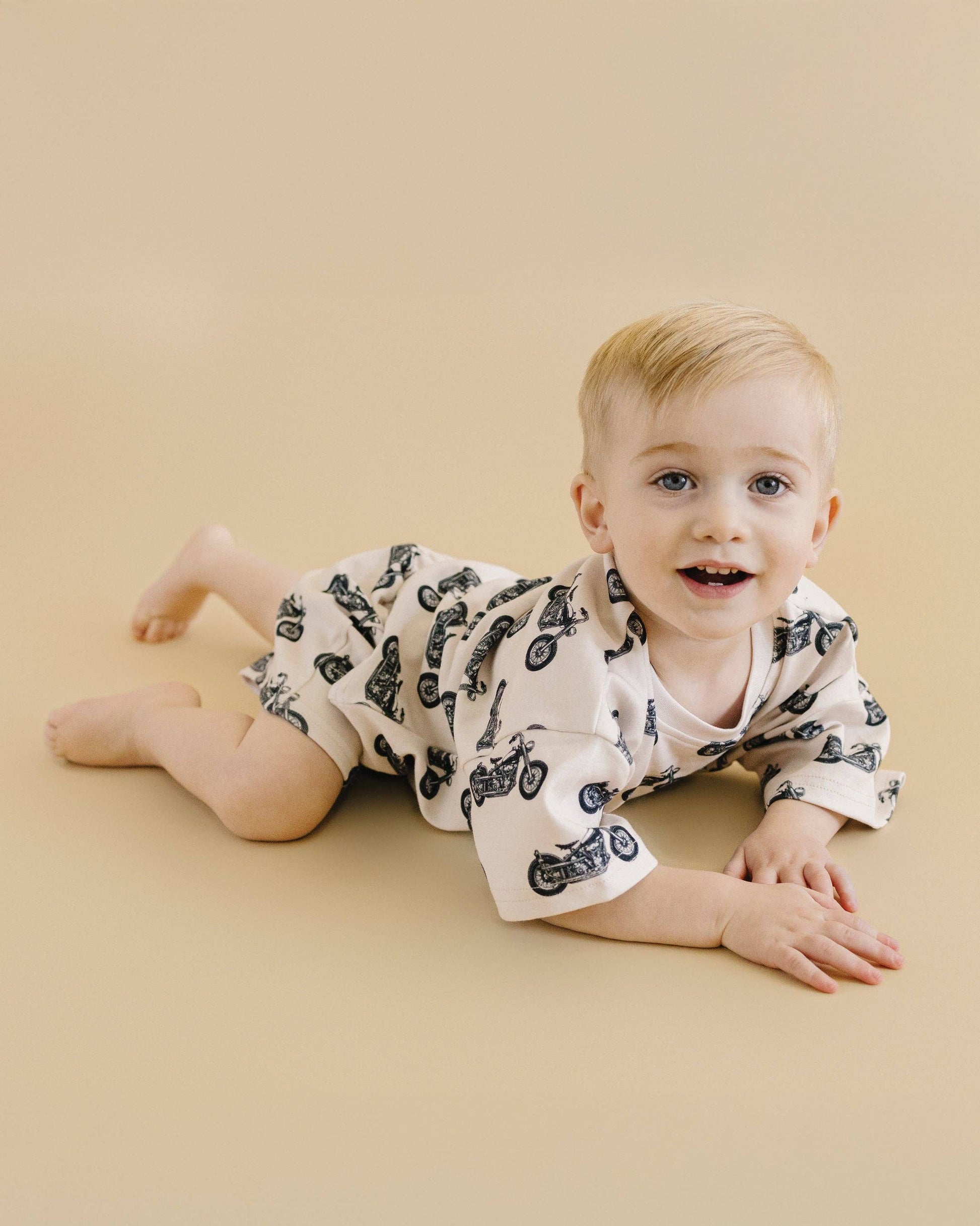 For the adventurous spirit, our Born to Ride shorts set is the perfect match! Featuring a cool motorcycle print, this set is designed for those who love a little edge in their style. Soft, breathable, and made for active days, this set will keep them comfortable while showing off their bold personality.