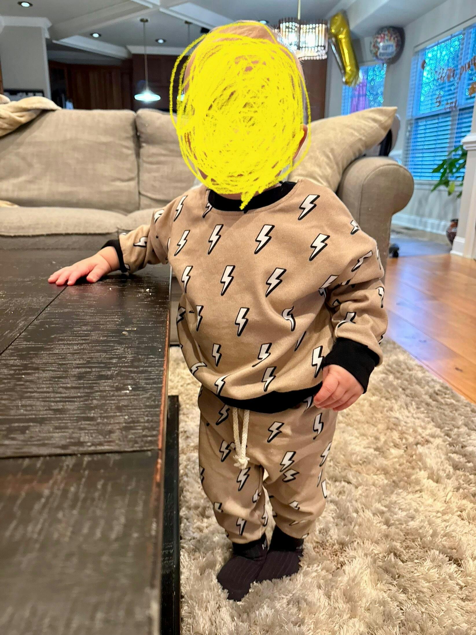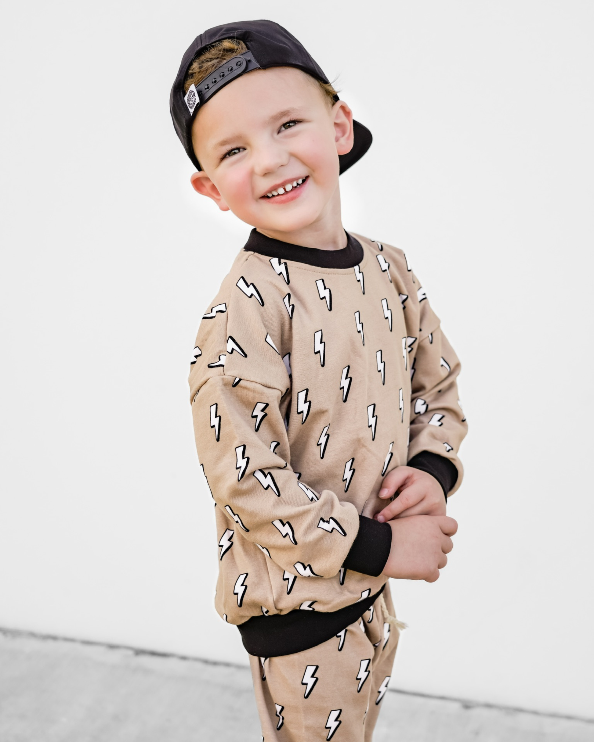 Lightning cute! This two-piece set is made of oh-so-soft cotton, perfect for daily lounging during the upcoming Spring months! Stylish enough for a day out, cozy and comfortable for play. Gender neutral and up to 9Y, this sweet and simple design will be your little one's favorite must-have!