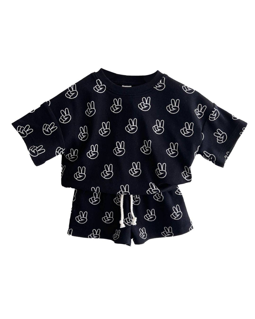 Say hello to the perfect summer shorts set! The set includes an oversized top and true to size shorts. Material : 95% Cotton, 5% Spandex Care Instructions : Wash with like colors Tumble dry on low or hang dry